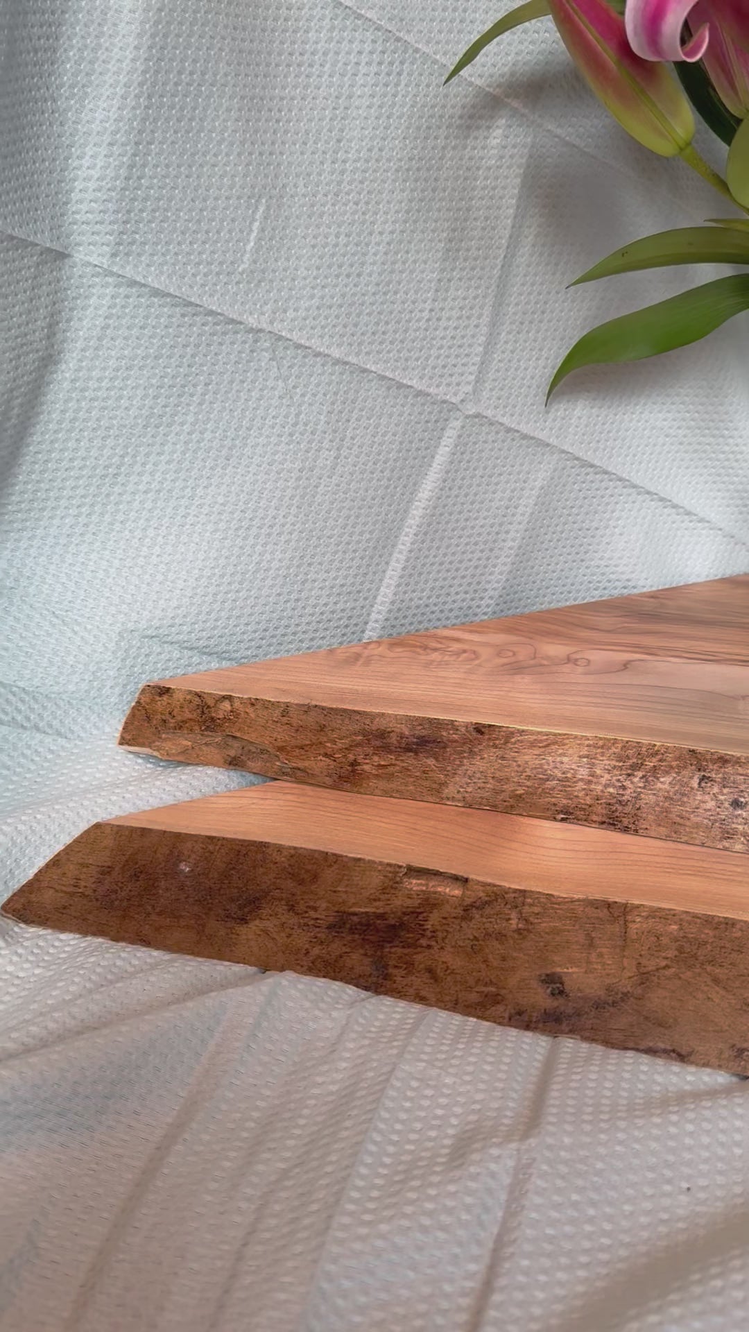 This is Killan dried live edge Maple corner shelves with pilot holes on the bottom to direct your screw where it needs to go! SET OF 2