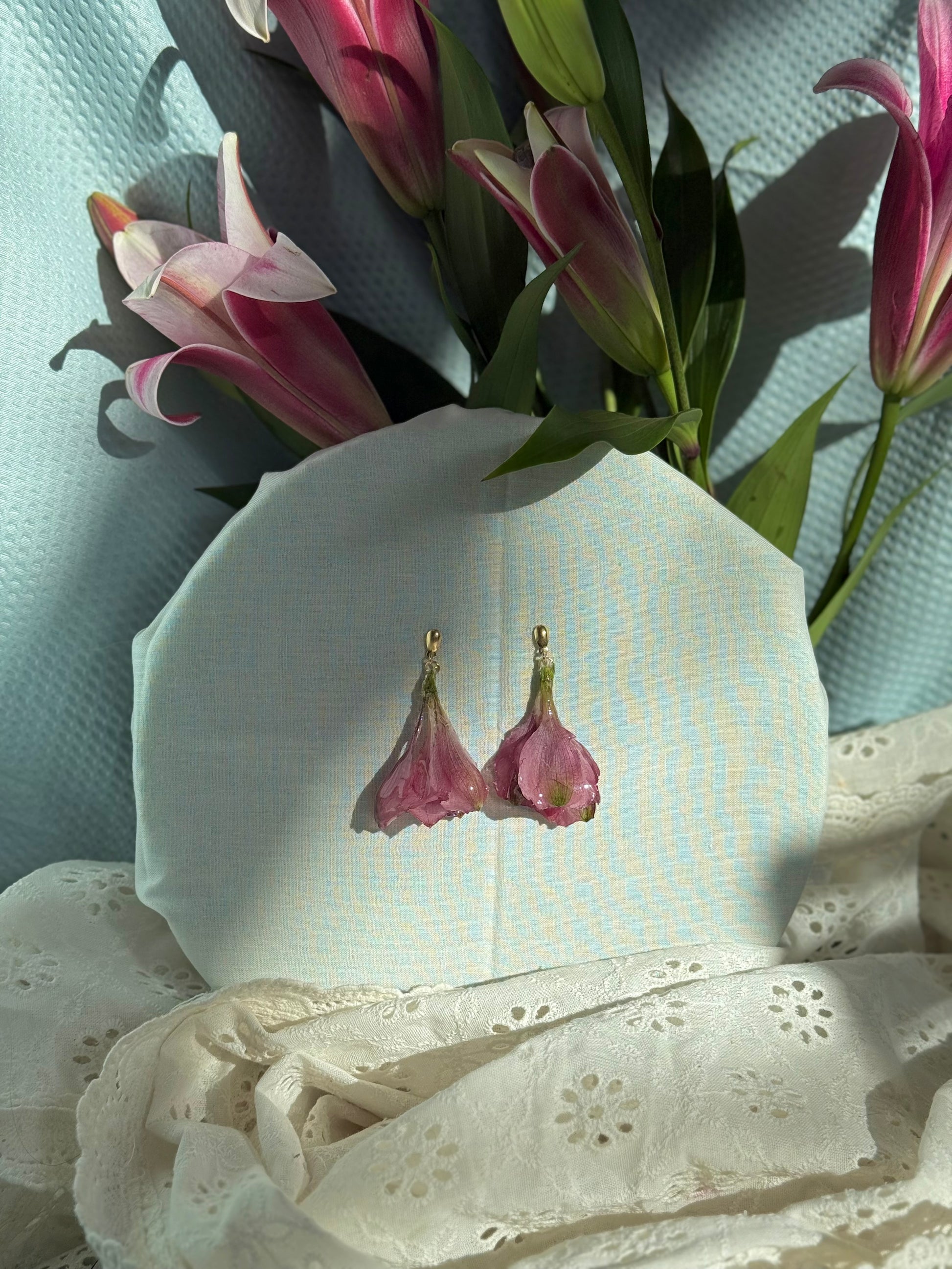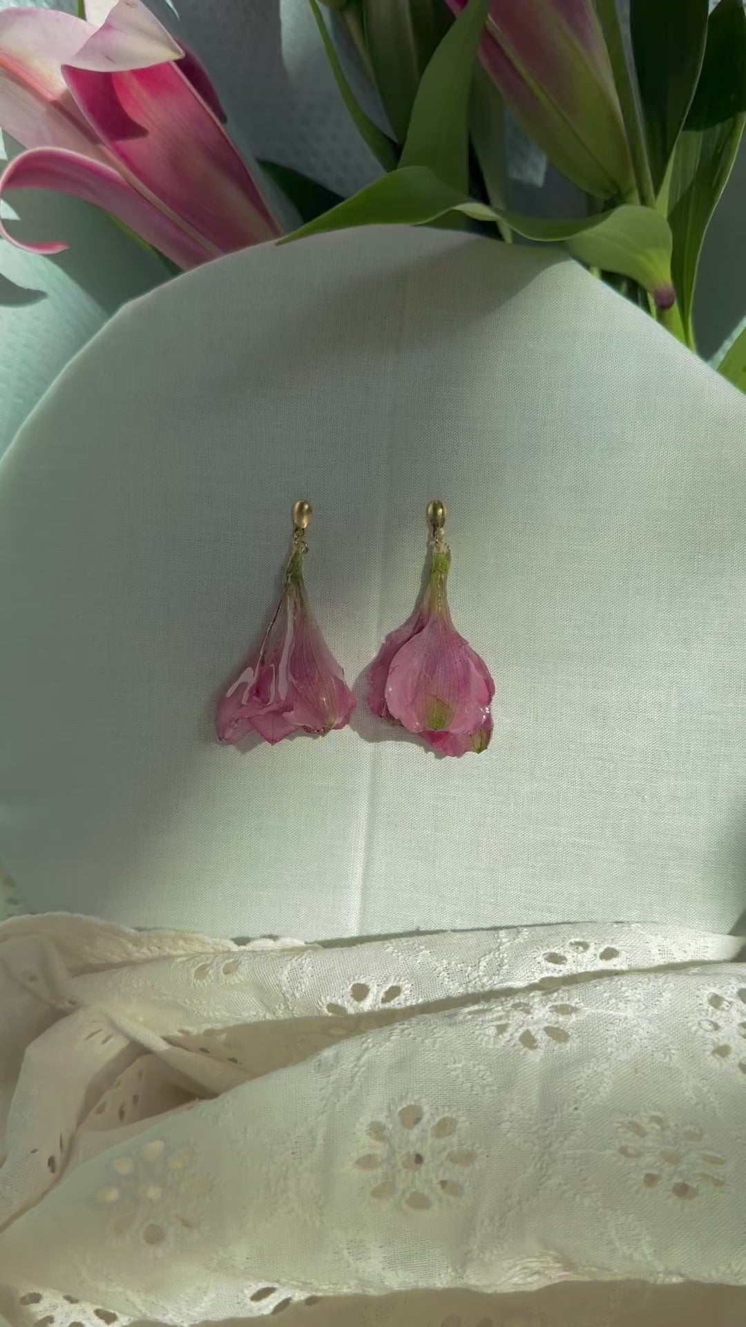 These are real pink Alstroemeria flowers with a gold stud ! Lightweight!