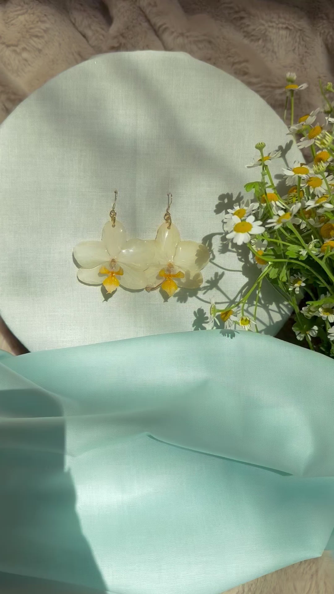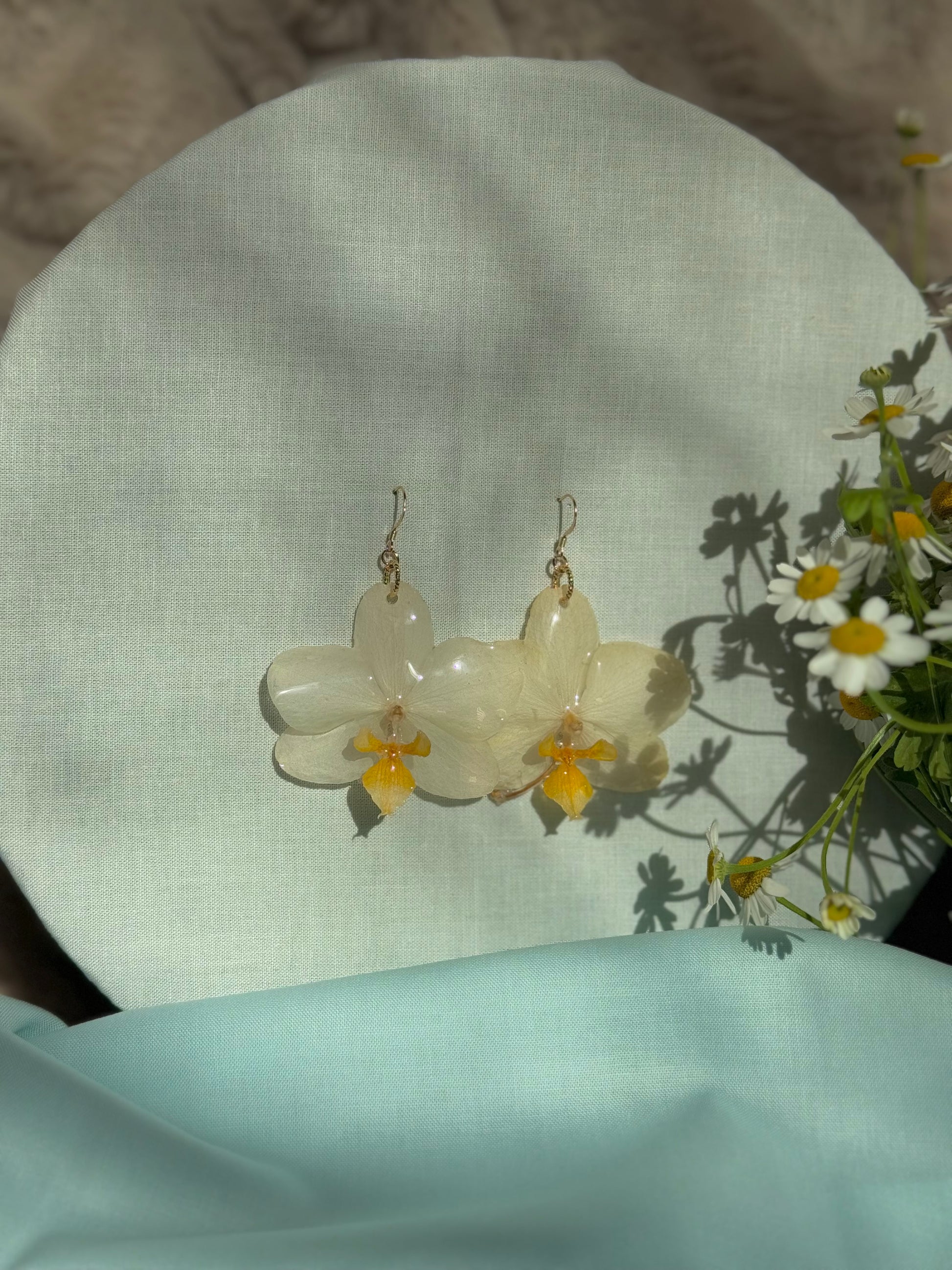 Yellow real orchid, earrings with gold hooks, lightweight